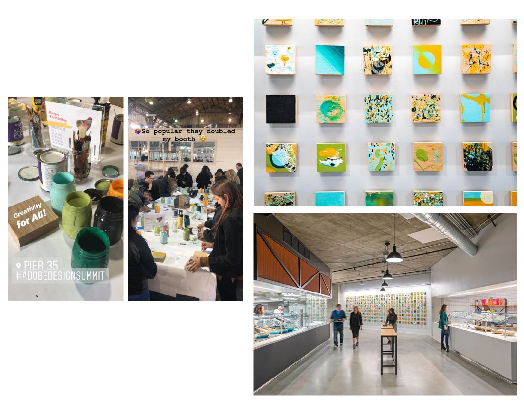 At Adobe’s Design Summit, I designed and facilitated an interactive mural experience, empowering attendees to paint individual pieces that formed a large-scale collective artwork which would have a permanent home in the cafe of their new San Francisco office.
