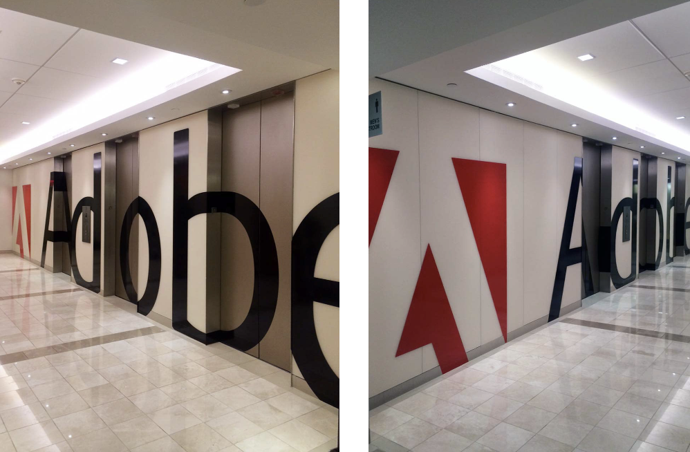Bold Branding was the only way to describe the design concept for the design of the elevator vestibule at the Times Square office. The branding served as both wayfinding and advertising any time the elevator made a stop. This design broke away from Adobe’s traditional brand application and was the start of a brand evolution in Adobe’s workplaces.